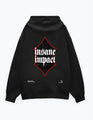 The "INSANE IMPACT" hoodie from MAN OF GOD is for the relentless builder and the courageous change-maker. Its deep black canvas provides the perfect backdrop for the gothic, impactful design, framed in a striking red MOG logo. The hidden floral pattern within the text hints that even the most forceful impact can create beauty and growth.